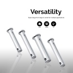 - UNIQUE DESIGN: Strong steel construction allows the single holed clevis pins to handle lateral stress without compromising its quality. Each pin does have a through-hole at the bottom of their shank to allow them to be secured with various locking pins, such as cotter pin, split pin, or a hairpin cotter.