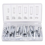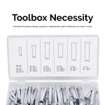 Details: Clevis pins make a great tool addition for any small and general projects around the home. With this assorted set of Clevis pins, You no longer have to buy individual pins and worry about getting the right size and length. An important part to the clevis fastener system, The clevis pin works together with cotter pins (not included) to allow absorption of Lateral stress and provides free rotational movement of the supported object. With the high versatility of these pins, You can utilize them as fasteners that can securely fasten objects together and allow them to have freedom of movement. This set includes a wide variety of (SAE) Clevis pins for all your fastening needs around the home. The set comes with 3 hole sizes: 3/32″-hole (4-3/1 X1″, 4-1/4 x 1″, 3-D/4×1-1/4″, 4-1/4×1-1/2″, 3-D/4×1-3/4″, 3-D/4×2″, 3-1/4×2-1/4″, 3-D/4×2-1/2), 1/8-hole (3-5/16 X1″, 3- 5/16 x 1-1/4″, 4- 5/16 x1-1/2″, 3-5/16×1-3/4″, 2-5/16×2″, 2-5/16 x2-1/4″, 1-5/16×2-1/2″, 2-5/16×2-3/4″), 5/32″-hole (4 – 3/8 x 1″, 3 – 3/8 x 1-1/2″, 2 – 3/8 x 2″, 2 – 1/2 x 1-1/2″)